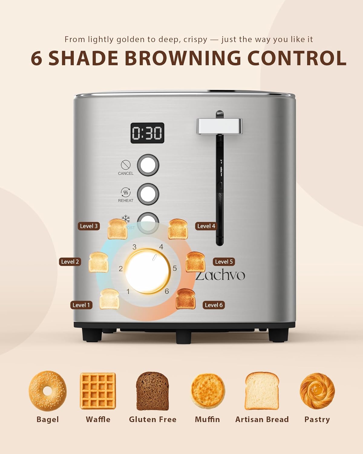 | Special Features | Digital Countdown, Removable Crumb Tray, Stainless Steel, Toaster 2 Slice, Wide Slots for Toast Bread & Bagels |