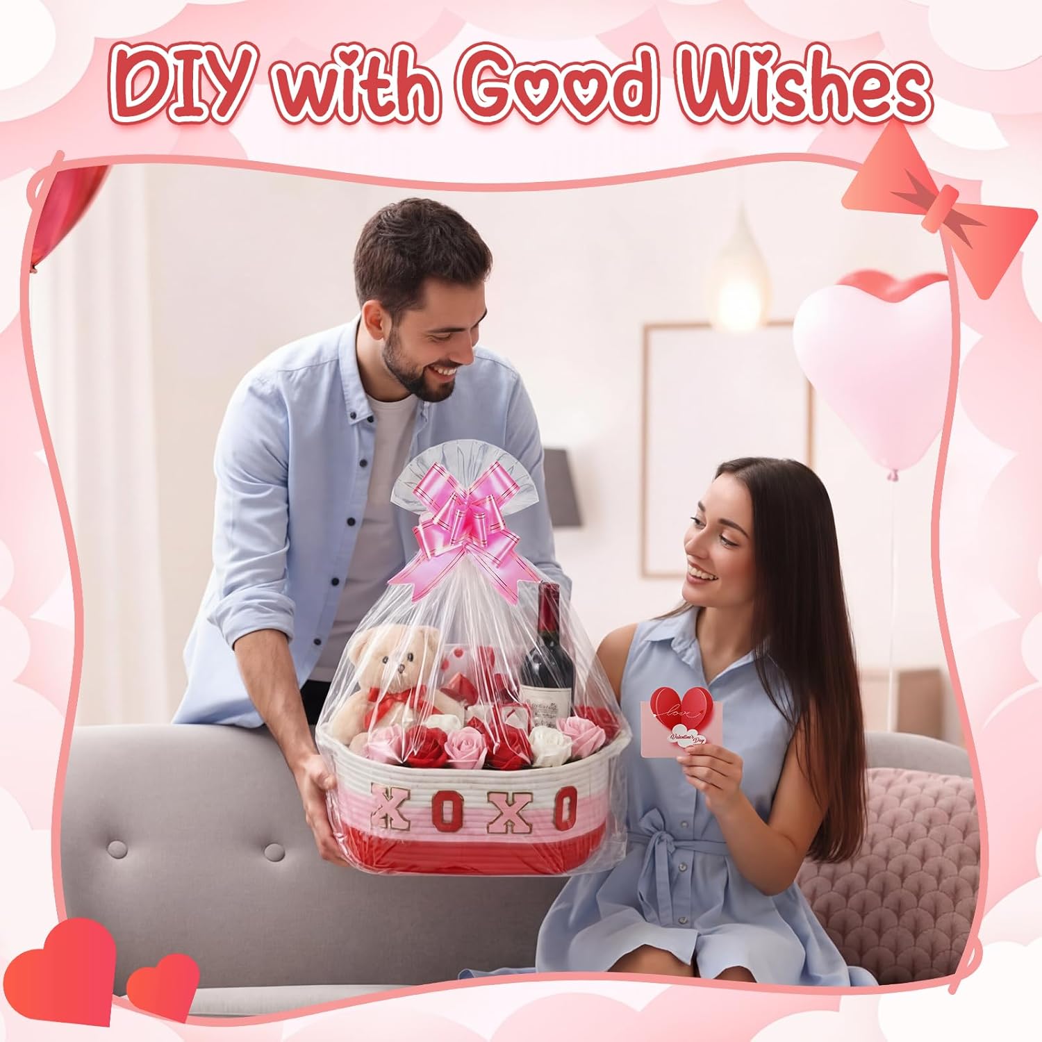 Features: Ideal for party and everyday use: Good as party favors, gift baskets, or everyday organizers. Brightly printed and thoughtfully designed to bring joy and functionality to any occasion. Reusable and customizable decor: Alphabet stickers can be applied or removed as desired. Combine with included gift bags and bows to create gifts or charming home accents. Specifications: Material: Color: red, pink, white Size: Valentine's gifts baskets: about 12.2 x 8.27 x 5.12 inches/ 31 x 21 x 13 cm Package includes: 8 x Valentine's Day large woven basket with handle 8 x Greeting card 8 x Clear plastic bag 8 x Pink pull bow Notes: Manual measurement, please allow slight errors on size. The color may exist a slight difference due to different screen displays