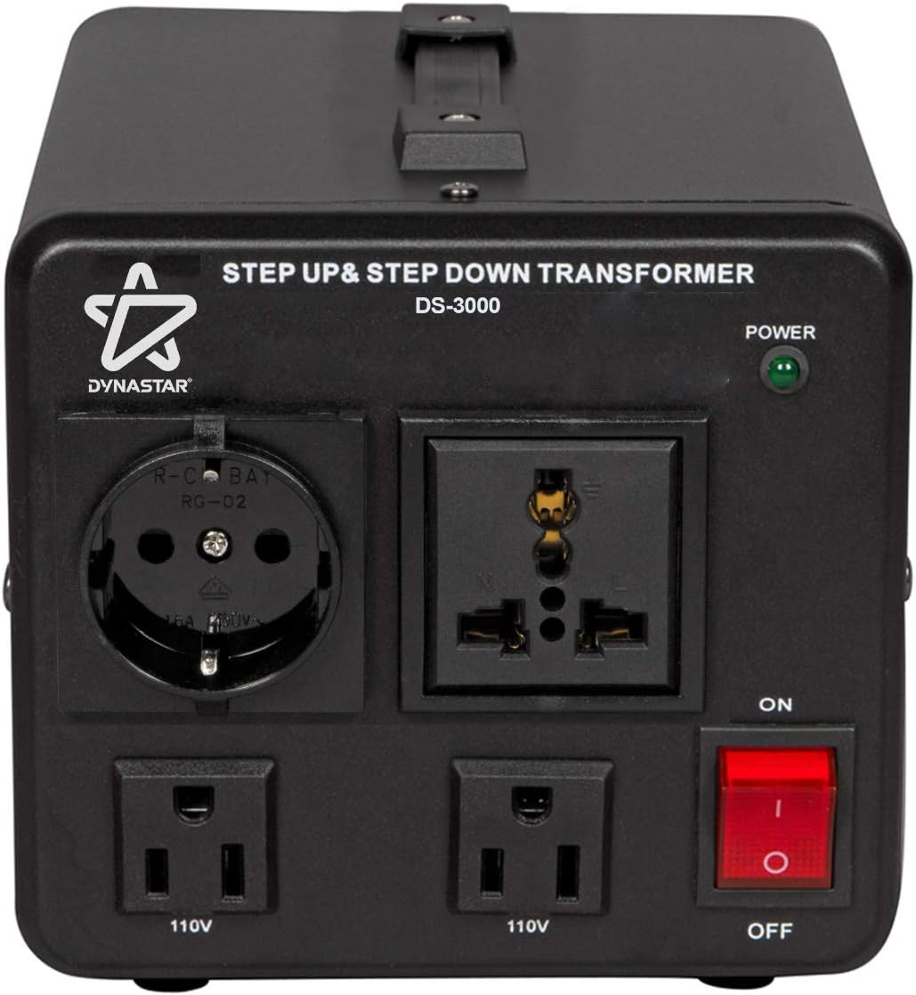 The patented Dynastar universal step up/step down voltage converter and transformer is designed to keep you powered up no matter where you are in the world. Easily calculate the wattage of your appliances by following the handy guide below. Comes with 2 spare fuses for backup, and a Euro Schuko plug adapter to convert smaller electronics Heavy duty extra durable lifetime coil makes the converter and transformer safe for continuous use. Multiple appliances can be used with the same transformer, as long as wattage capacity is not exceeded Works for virtually any plug from anywhere in the world, with the exception of US 220/240 volt outlets (usually found on commercial products like washers and dryers) Five year limited manufacturer warranty HOW DO YOU KNOW WHICH CONVERTER YOU NEED? Check the total wattage consumed by your electrical devices and multiply that number by 3. You need a converter at least 3x the watts of the devices to leave enough room for surges in power they may utilize. To determine the correct wattage allowance of the voltage converter/transformer you need, first identify the wattage of the electronic devices or appliances you plan to use. This information can be found on the manufacturer's label located on the back or bottom of the device or appliance, or in the specifications section of the appliances' owner's manual. Note: Watts may be listed as "W" on your appliance. If you can't find "Watts" or "W" on the label, you may find "Amps," also known as "amperage" or "A". If only the amperage is shown, multiply the input voltage by the amperage to find the wattage. Use the following example as a guide: Volts x Amps = Watts or 110V x 1.5 A = 165W. After totaling the watts of all the devices for use with the transformer, add up the total watts and multiply that number by 3.