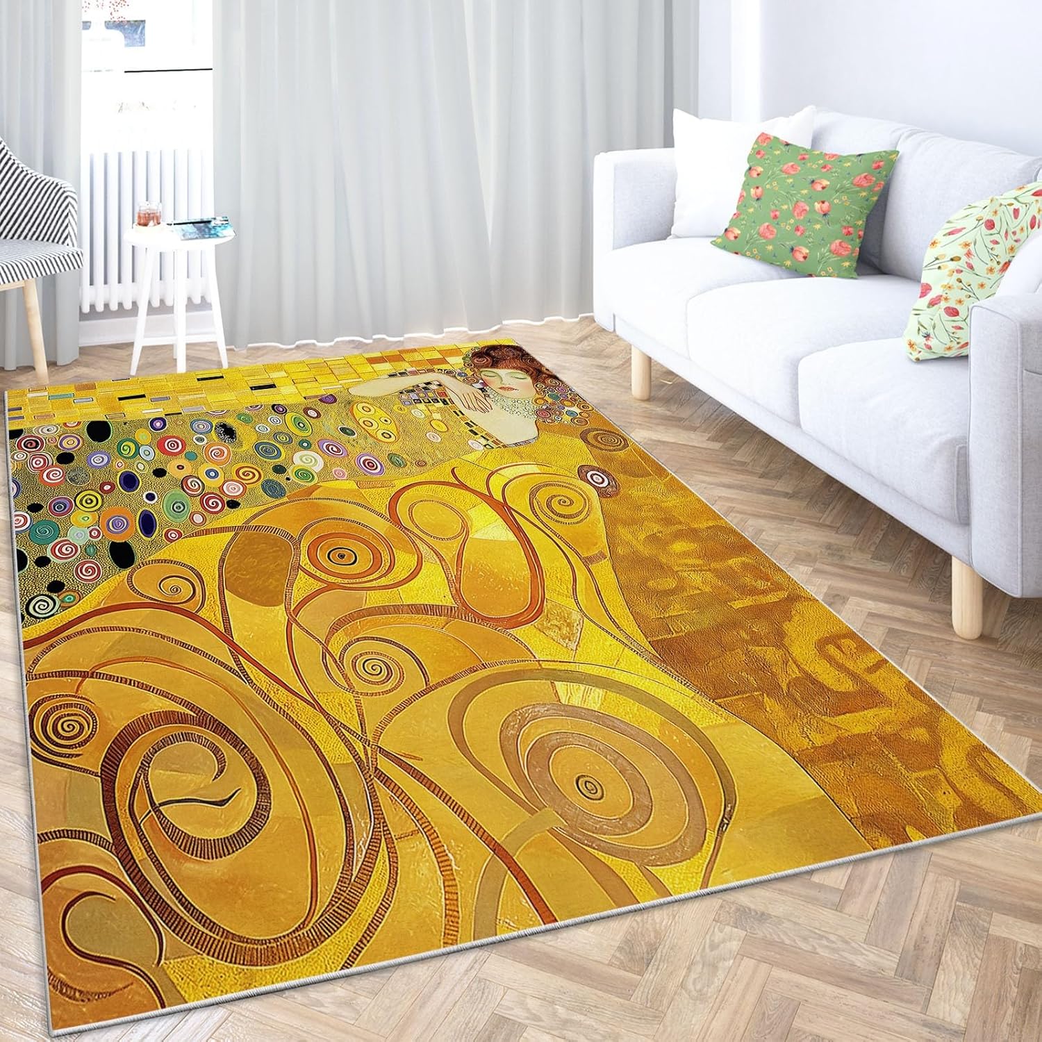 We are committed to providing customers with unique, high-quality home textile products that bring warmth and comfort to your home. We have a professional in-house production team and a creative design department, and we’re confident you’ll love our products. Printed Pattern Rug: This area rug showcases a vibrant, digitally printed design with intricate details—adding unique style and color to any room. Ultra-Soft & Pet-Friendly: The carpet features an ultra-soft faux wool surface, offering a plush and comfortable texture that's perfect for children to play on and pets to roam freely. Non-Slip Backing: The area rug features a non-slip backing with strong grip, helping to keep it securely in place—no more slipping or bunching while kids or pets are playing. Multi-Use & Perfect Gift: Our area rugs are suitable for both indoor and outdoor spaces—such as living rooms, bedrooms, kitchens, offices, playrooms, and more—and their simple, practical, and beautiful design makes them a thoughtful gift for birthdays, holidays, and special occasions. Description: Size Information: 4 x 6 ft Package Includes: 1x area rug + 4 non-slip stickers Care Instructions: 1. Wash separately. Avoid soaking for more than 30 minutes. 2. Machine wash cold or hand wash on a gentle cycle. 3. Do not bleach. Tumble dry on low or hang to dry in a cool, shaded area. Warm Tips: The area rug may arrive with temporary creases due to packaging. Simply roll it in the opposite direction or smooth it out by hand, and the creases will gradually disappear. Customer Service: If you have any questions about our carpet or other products, please feel free to contact us. We’ll respond within 24 hours and do our best to resolve any issues you may encounter.