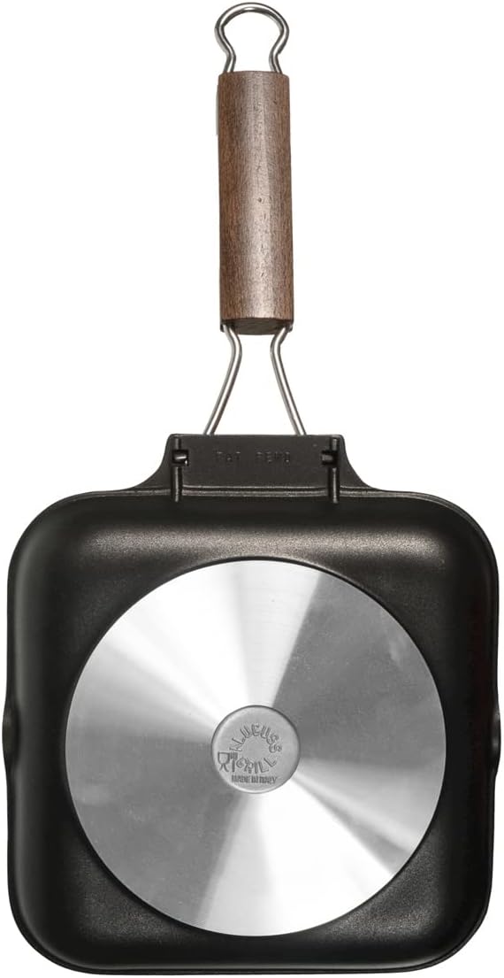Home in Rombo Pietra Non-Stick Steak Pan 20 cm with Folding Handle in Black Stone and Wood
