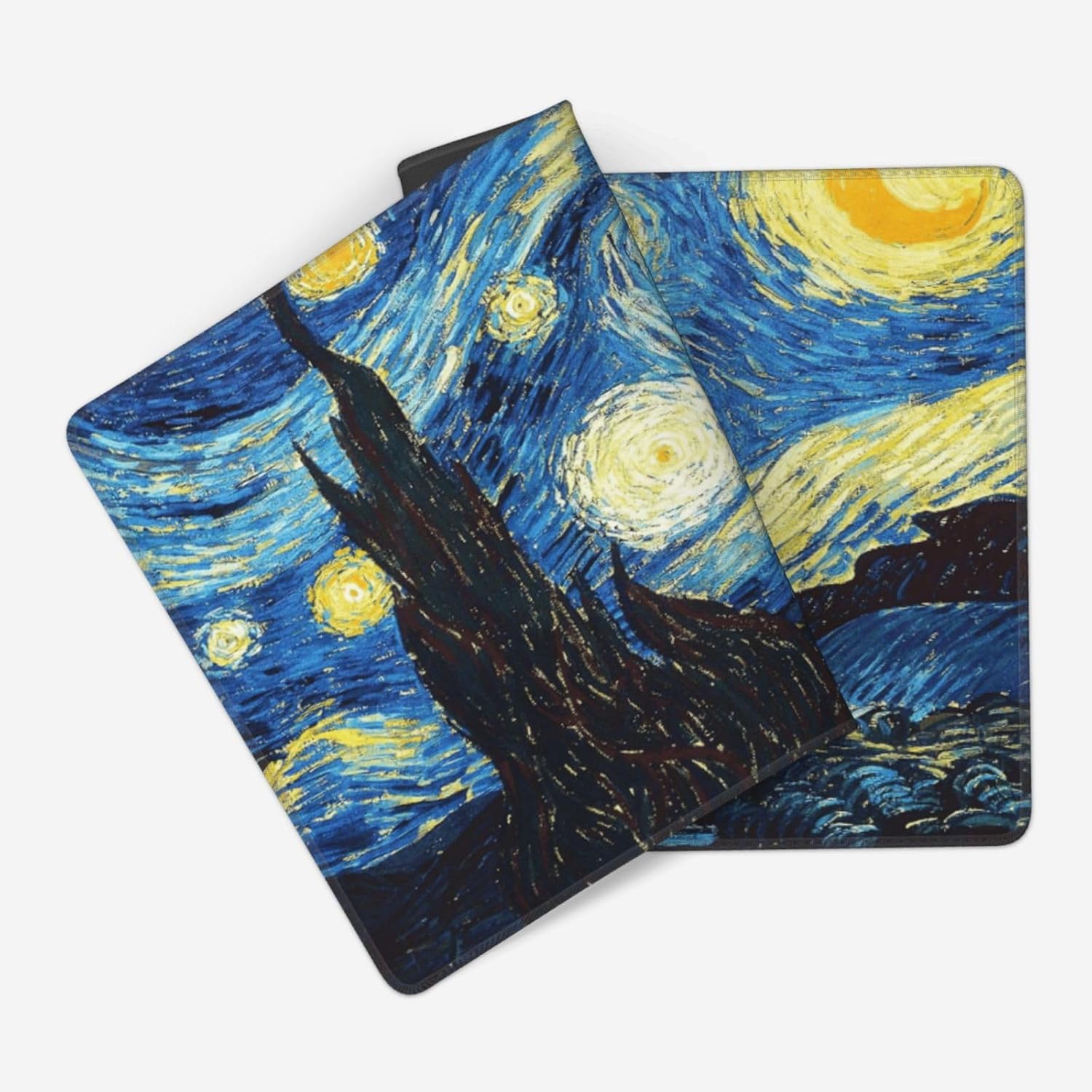 MTG Playmat Starry Night Painting Board Game Card Game Trading Card Game Play Mat TCG Mat Desk Pad Original Hand Paint Stitched Edges Rubber Base Smooth Surface. Material: Rubber (Bottom) +Polyester 100% (Surface) Dimension: 13.7 x 23.5x0.1 inch Product Technology: High Quality Ink High Definition Printing,Non-Slip Rubber Base,Water-Proof ,Double Stitched Edges