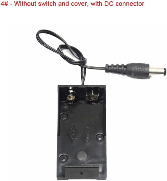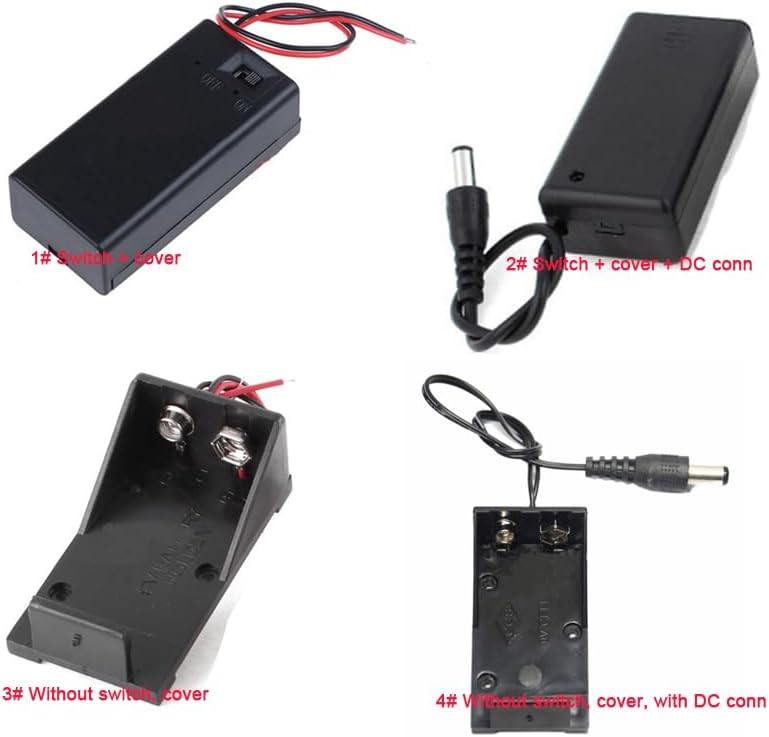 Product Description9V Battery Holder Box CaseBlack PlasticHold 1 standard 9V battery (each one) 4-types With/Without Switch,Cover and DC 2.1*5.5mm Pin and good quality !Package includes:According to your choice.