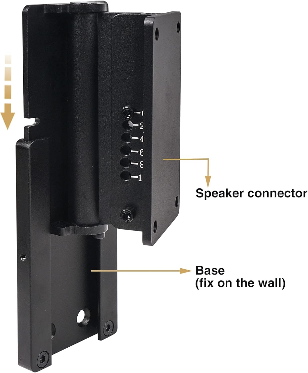 Sound Town 2-Pack Universal Speaker Wall Mount Brackets with Angle Adjustment, 4.25" x 2" Mounting Template, Black (CWB-1A-PAIR)* The Sound Town CWB-1A-PAIR is a 2-pack wall mount speaker brackets that can safely hang speakers on flat wall surface. Each speaker bracket comes with 4.25“ x 2” mounting holes and is compatible with many popular loudspeakers. The brackets are made of top quality extruded aluminum and each bracket has a maximum weight capacity up to 110 lbs. Better yet, the brackets feature angle adjustment and can be titled up to 10° vertically and 90° when mounted horizontally. They provide the flexibility you need to make the most of your system. *To install your speakers with flexibility, check out the Sound Town wall mount speaker brackets.