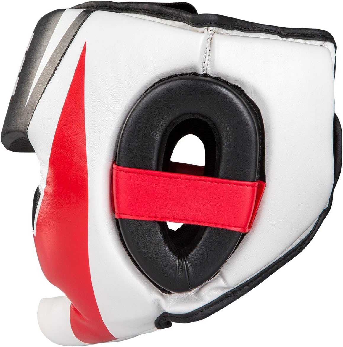 An amazing and incredibly lightweight and high shock-suppression one-piece injected molded inner foam with durable and innovative extra-long lasting synthetic cover for the ultimate comfort, coverage, delivery and durability elite athletes demand. Fully adjustable hook-and-loop fastening on the back of the neck for secure, snug and comfortable training. Anatomically correct chin pad, cheeks, ear pads, forehead, top of head and back of neck pads helps assure a precision, non-slip, comfortable fit during intense training. Moisture-wicking inside lining helps keep athletes cooler and drier during workouts. Approximate 10 oz. weight offers one of the lightest full headgear options without sacrificing coverage.