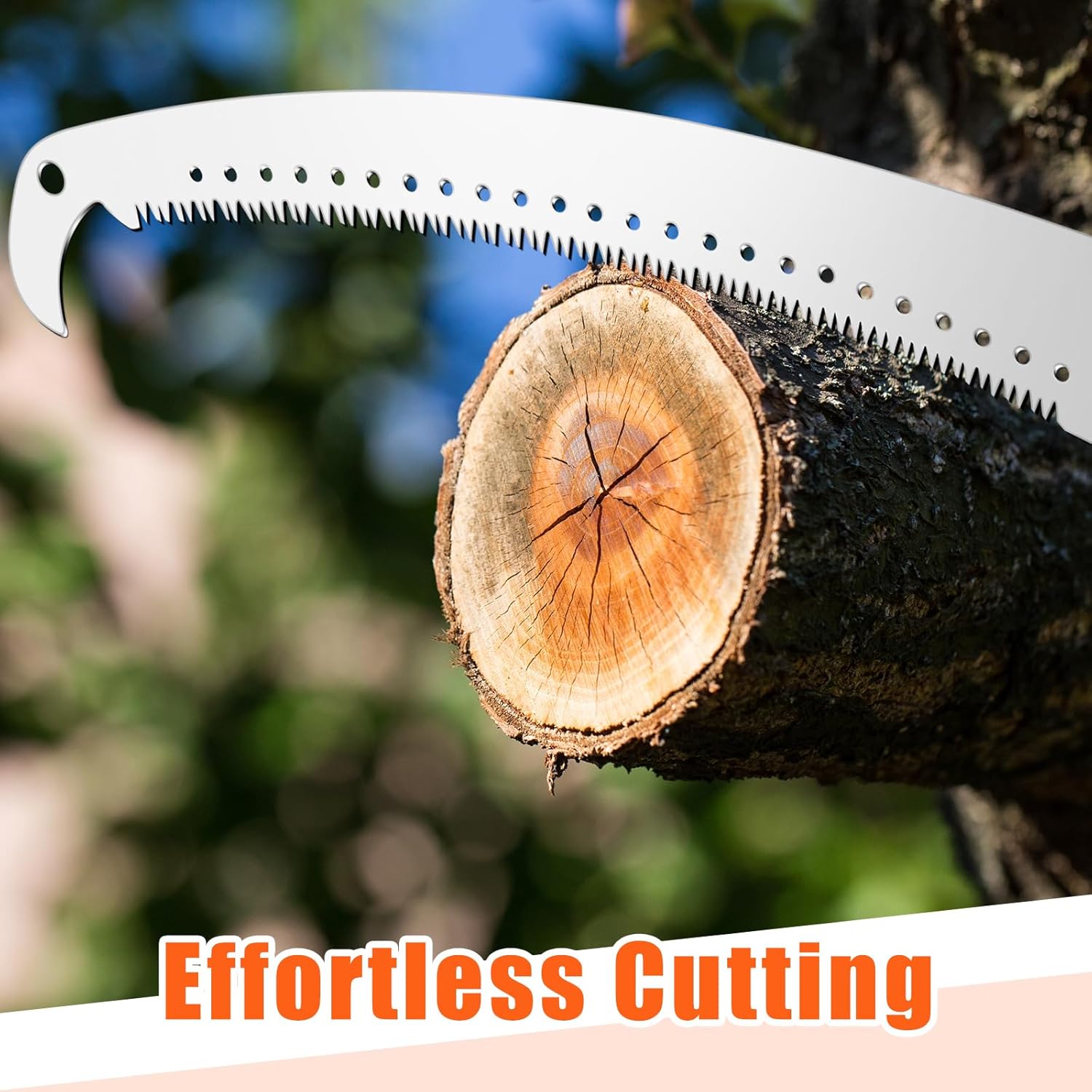 Features: Long lasting performance: With their nice quality construction and meticulous design, our replacement blades deliver reliable performance over time. Count on them for durability and consistent cutting results. Versatile application: These replacement saw blades are suitable for a wide range of pruning tasks, making them versatile and practical. Whether you're trimming branches, shaping trees, or performing other pruning jobs, these saw blades offer the versatility and performance to handle various cutting tasks with ease. Specifications: Material: manganese steelColor: Saw blades: silverBlade protective sleeve: orangeSize: about 16.5 inches/ 420 millimeter in lengthPackage includes: 2 x Saw blades 1 x Blade protective sleeveNotes: Manual measurement, please allow slight errors on size. The color may exist a slight difference due to different screen displays. Pointed items are included, it is recommended to wear tool gloves to avoid injury when using and please keep it away from kids.