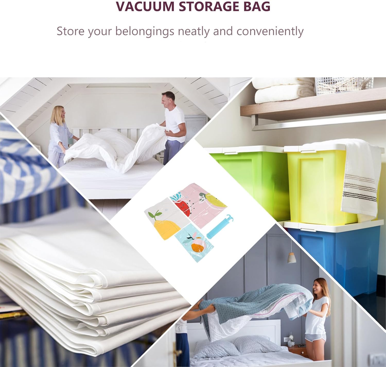 Package Include 9 x vacuum storage bags 1 x manual pump Features - Color: Assorted color. - Material: PA, PE. - Size S: 60.00X40.00X1.00cm/ 23.62X15.75X0.39inch. - Size L: 100.00X80.00X1.00cm/ 39.30X31.44X0.39inch. - Size : 60.00X80.00X1.00cm/ 23.62X31.44X0.39inch. -Product Info:Compression storage bag set - Preferred PA and PE materials, , safe, and practical. - Can help you achieve a more efficient storage effect and protect your storage vacuum packing bags. - Can be used to store blankets, duvets, quilts, curtains, pillows, clothes, etc Home Storage Bag. - Convenient to carry, save space, easy to use, convenient for you to use at any time compression packing bags. - Suitable for storing clothes and bedding. Moisture- , - , dust- , clean and tidy vacuum seal bags with pump.Goods Informationvacuum compression bags Simple to use, space-saving and , and will serve you well.Space Saver Bags Made of craftsmanship and high-performance materials, it has excellent durability and practicality, which can help you achieve a more efficient storage effect and protect your storage.vacuum packing bags Are you looking for professional and practical vacuum storage bags? Our products will be your good choice